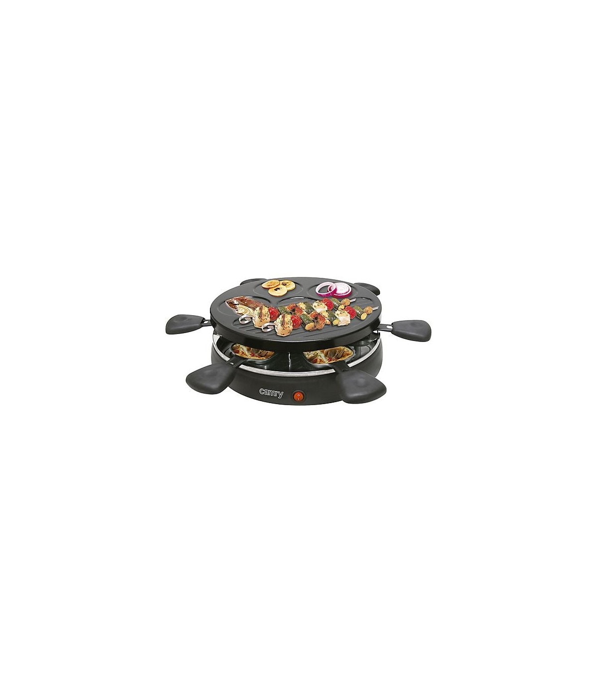 La moderna parrilla - raclette de Camry permite asar a la plancha tu carne y verduras favoritas y preparar queso asado al mismo tiempo.