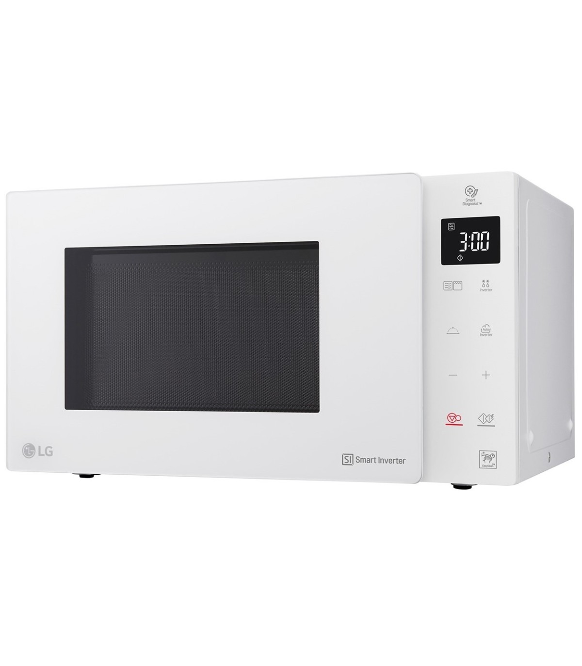 Micro-ondes Grill LG MH6535GDH, capacité de 25 litres, design blanc. Gril puissant pour dorer et gratiner. La technologie Smart Inverter assure une cuisson homogène. Plusieurs programmes de cuisson et de décongélation. Revêtement intérieur facile à nettoyer. Dimensions : 48,4 cm x 39,5 cm x 28,5 cm. Puissance du micro-ondes : 1000 W ; puissance du gril : 800 W. Idéal pour les familles ou les personnes à la recherche de rapidité et d'efficacité dans la cuisine.