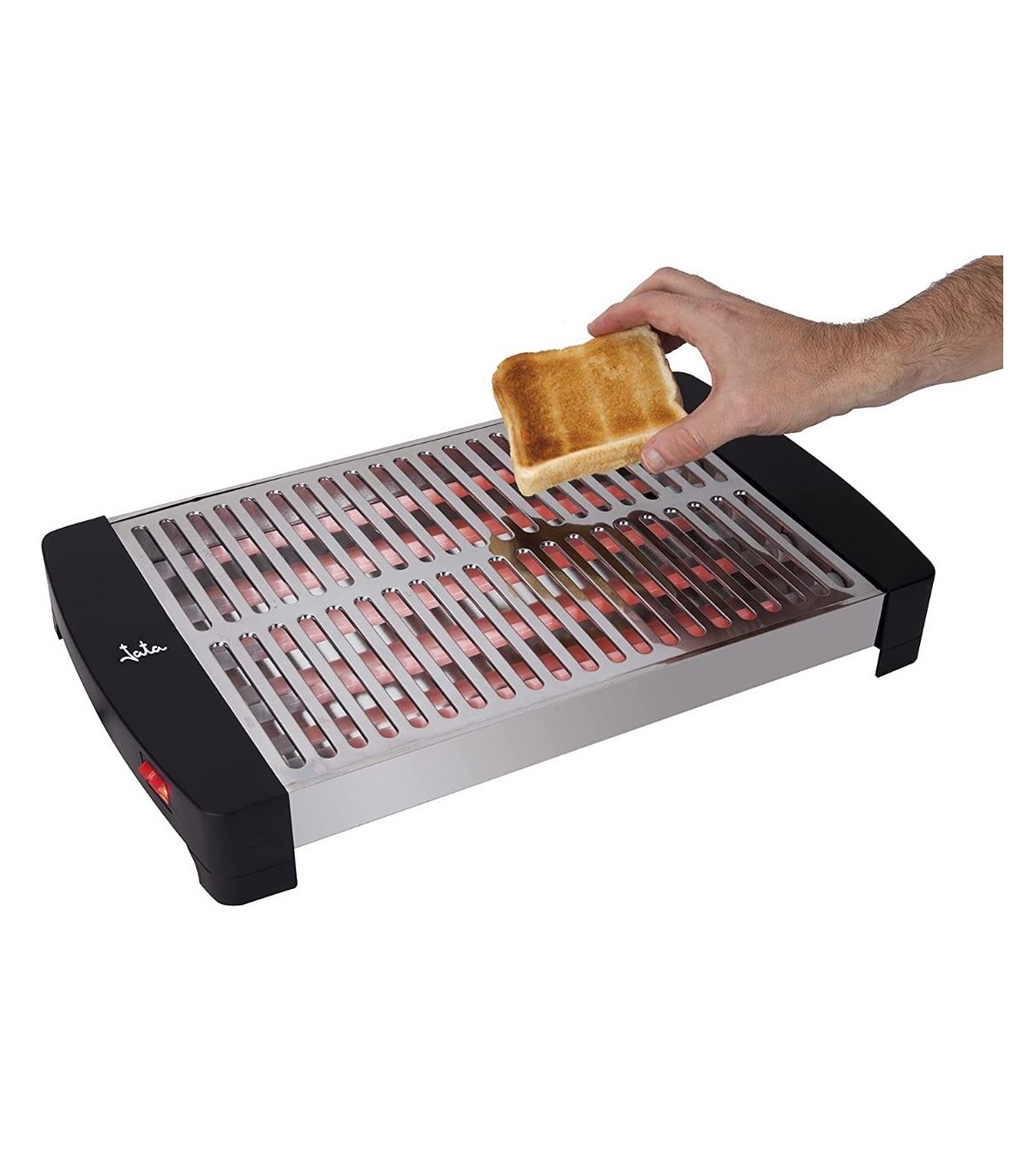 Le grille-pain horizontal Jata TT591 a une puissance de 800 W, une structure conçue pour griller de larges tranches de pain, un système de contrôle de la température à plusieurs niveaux, un tiroir ramasse-miettes amovible et un design élégant et fonctionnel qui s'intègre à toutes les cuisines. Sa taille compacte permet un rangement facile et pratique, ce qui fait de ce grille-pain un outil essentiel pour tout amateur de cuisine.