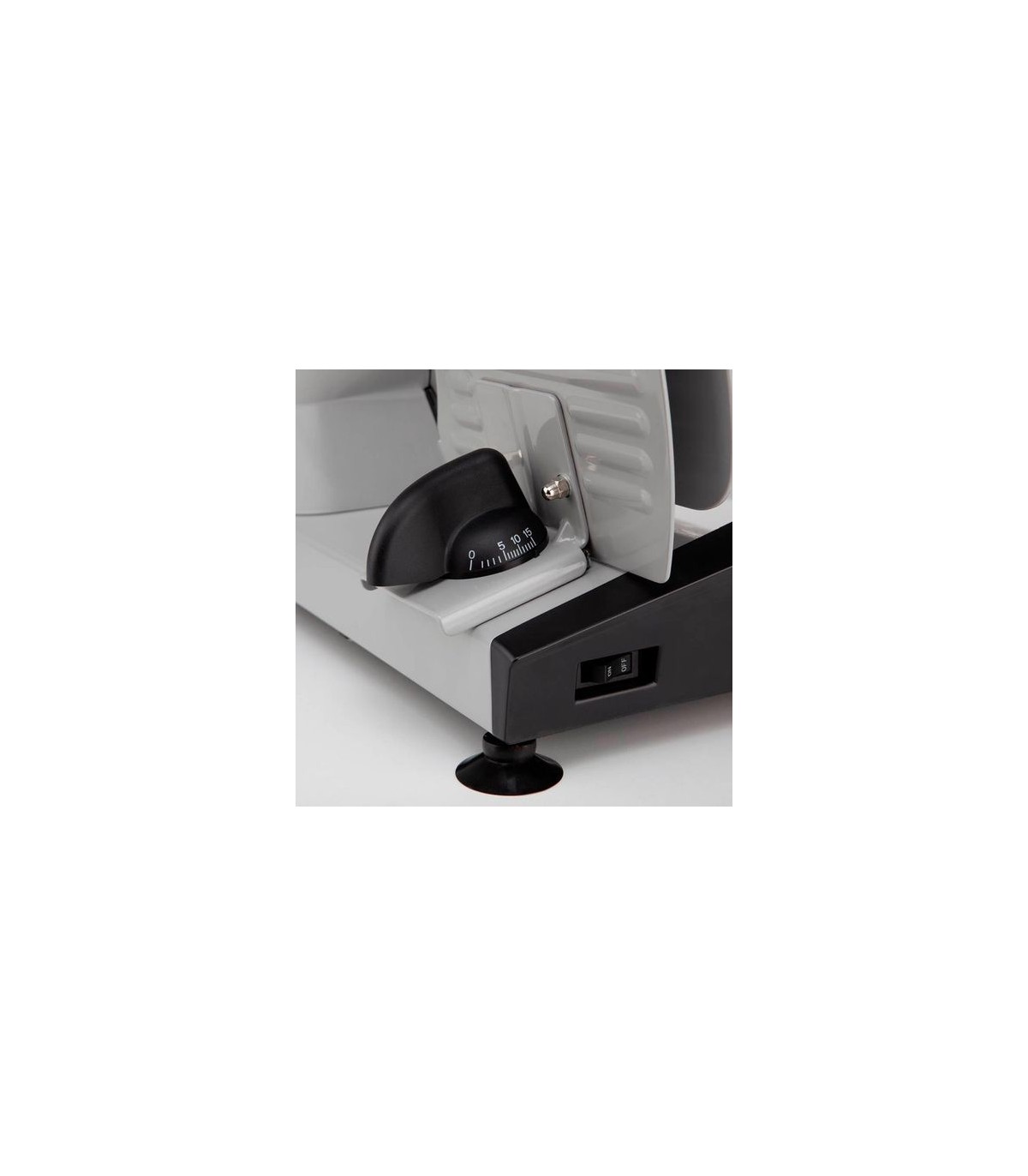 Ce modèle permet de régler l'épaisseur de coupe entre 0 et 15 mm, s'adaptant aussi bien aux tranches très fines qu'aux coupes plus épaisses. Son utilisation est simple et intuitive grâce au curseur de sécurité et au plateau d'appui de 19 x 16,5 cm, qui facilitent son utilisation au quotidien.