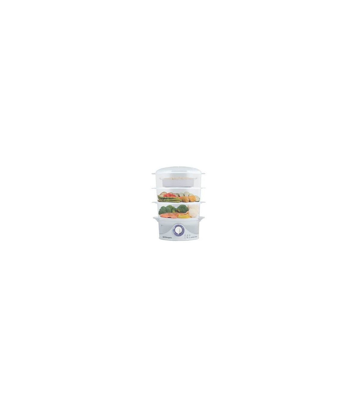 - Cuiseur vapeur avec 3 récipients empilables et un récipient spécial pour le riz.