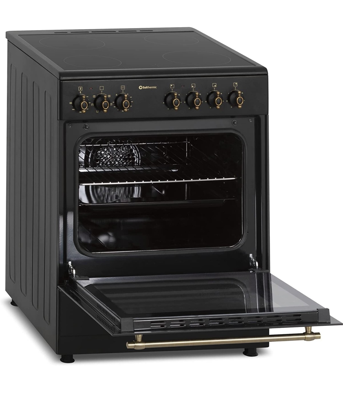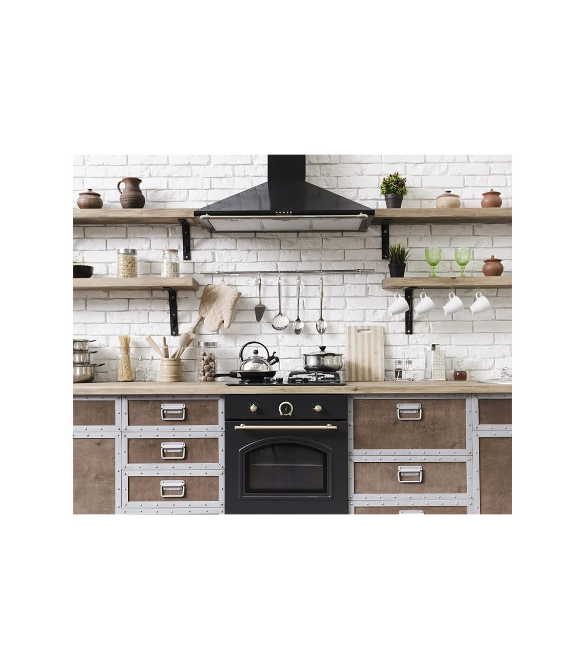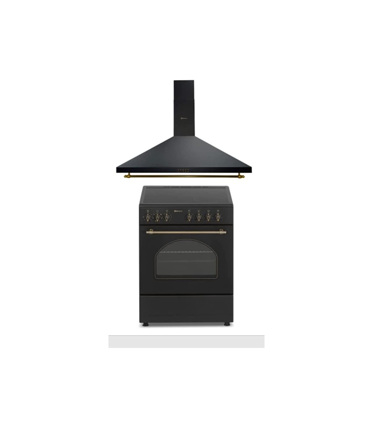 PLAQUE DE CUISSON VITROCÉRAMIQUE AVEC FOUR 60 CM DE LARGE + HOTTE ASPIRANTE 60 CM DE LARGE/NOIR RUSTIQUE STYLE RÉTRO