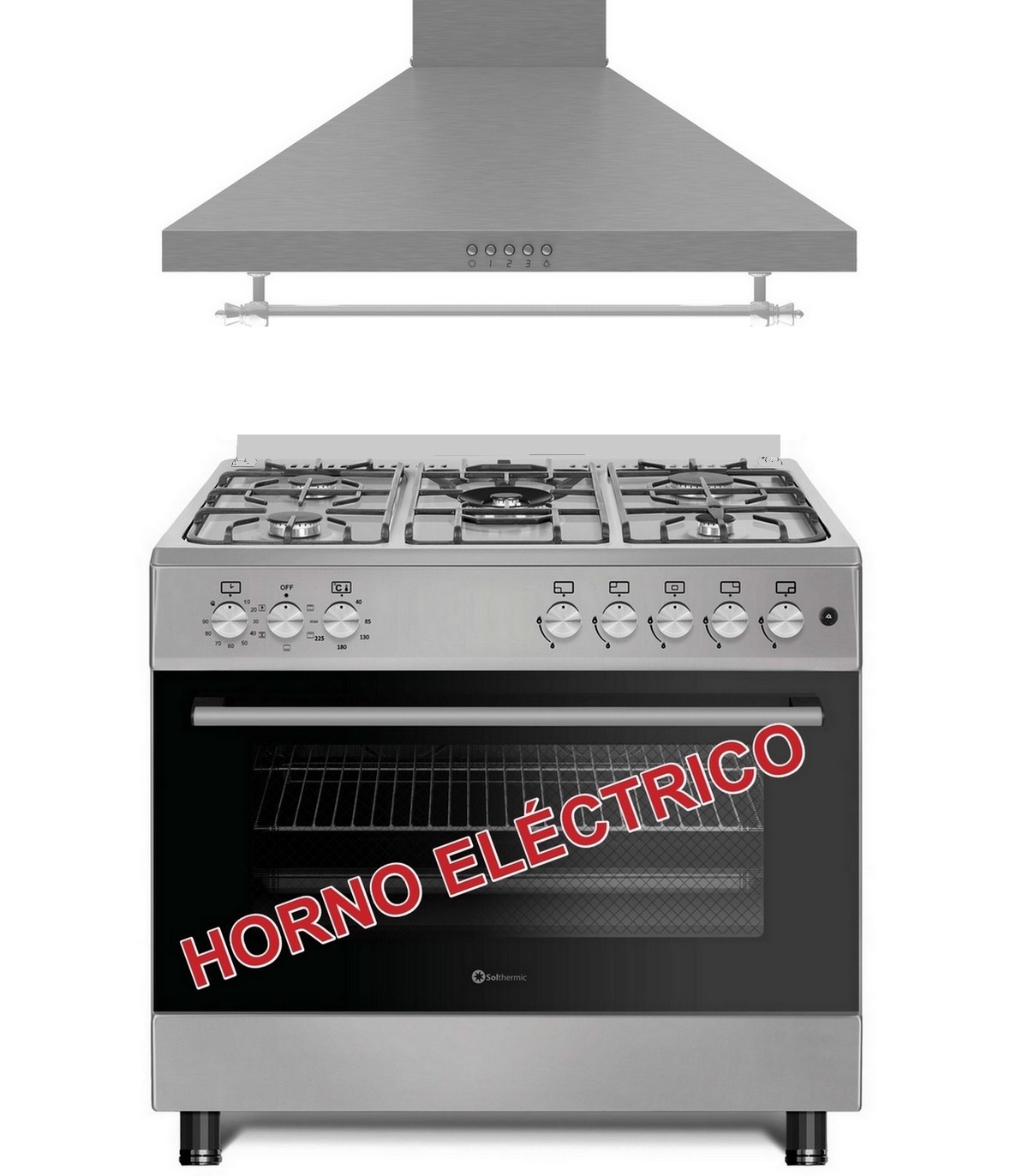 La Cocina Panorámica F9L50G2I INOX de Solthermic ofrece un diseño amplio con horno de gas panorámico y 5 quemadores, ideal para preparar varios platos a la vez. Cuenta con encendido automático, sistema de seguridad FDD, parrillas de fundición y tapa elegante. Su luz interior y reloj temporizador permiten un control preciso. Es compatible con gas butano y gas ciudad.
