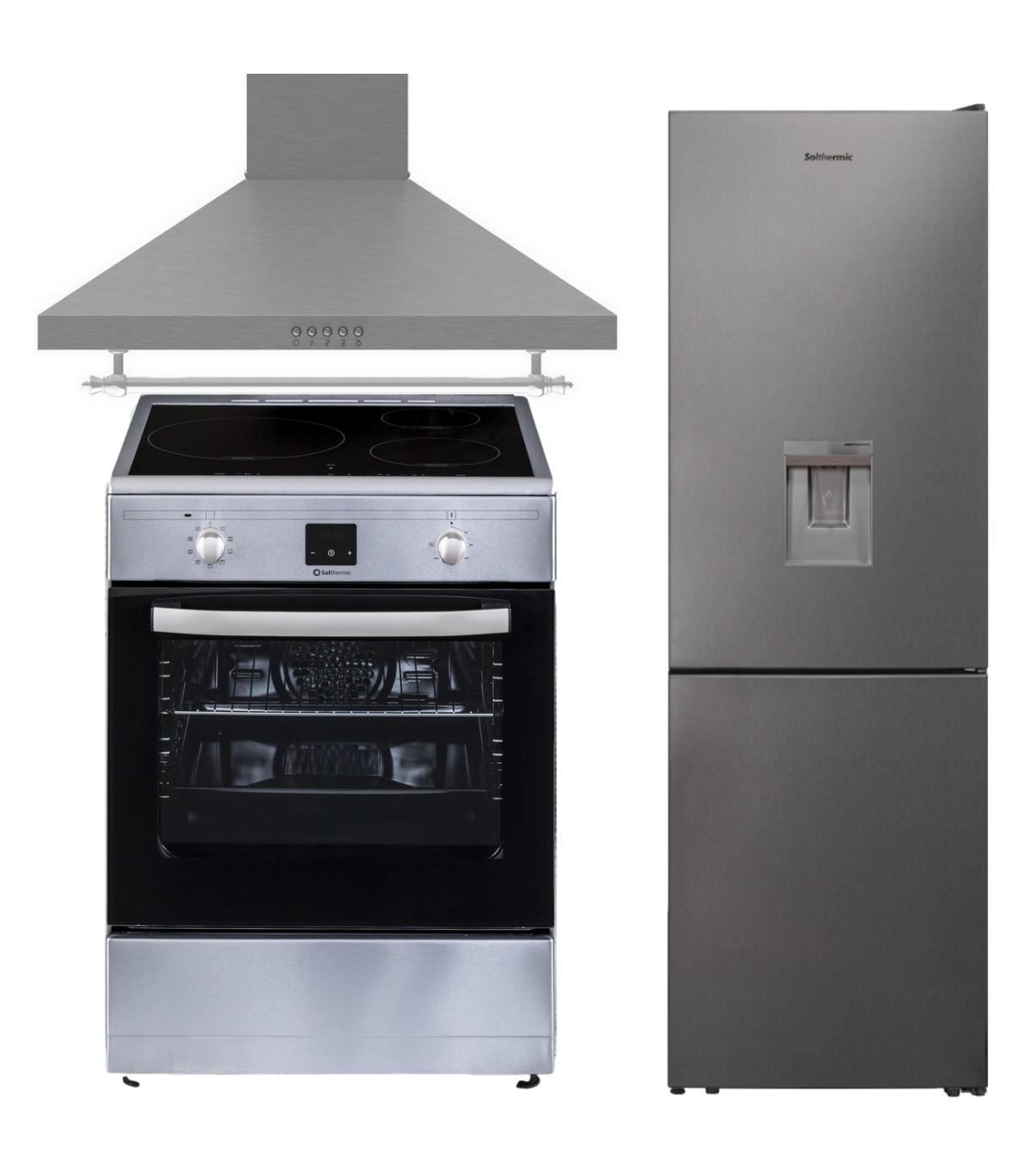 SOLTHERMIC® COMBO PACK CUISINIÈRE 60X60 VTI60 INOX INDUCTION + HOTTE 60 INOX + FRIGO-COMBI 2,00 INOX NO FROST AVEC DISTRIBUTEUR