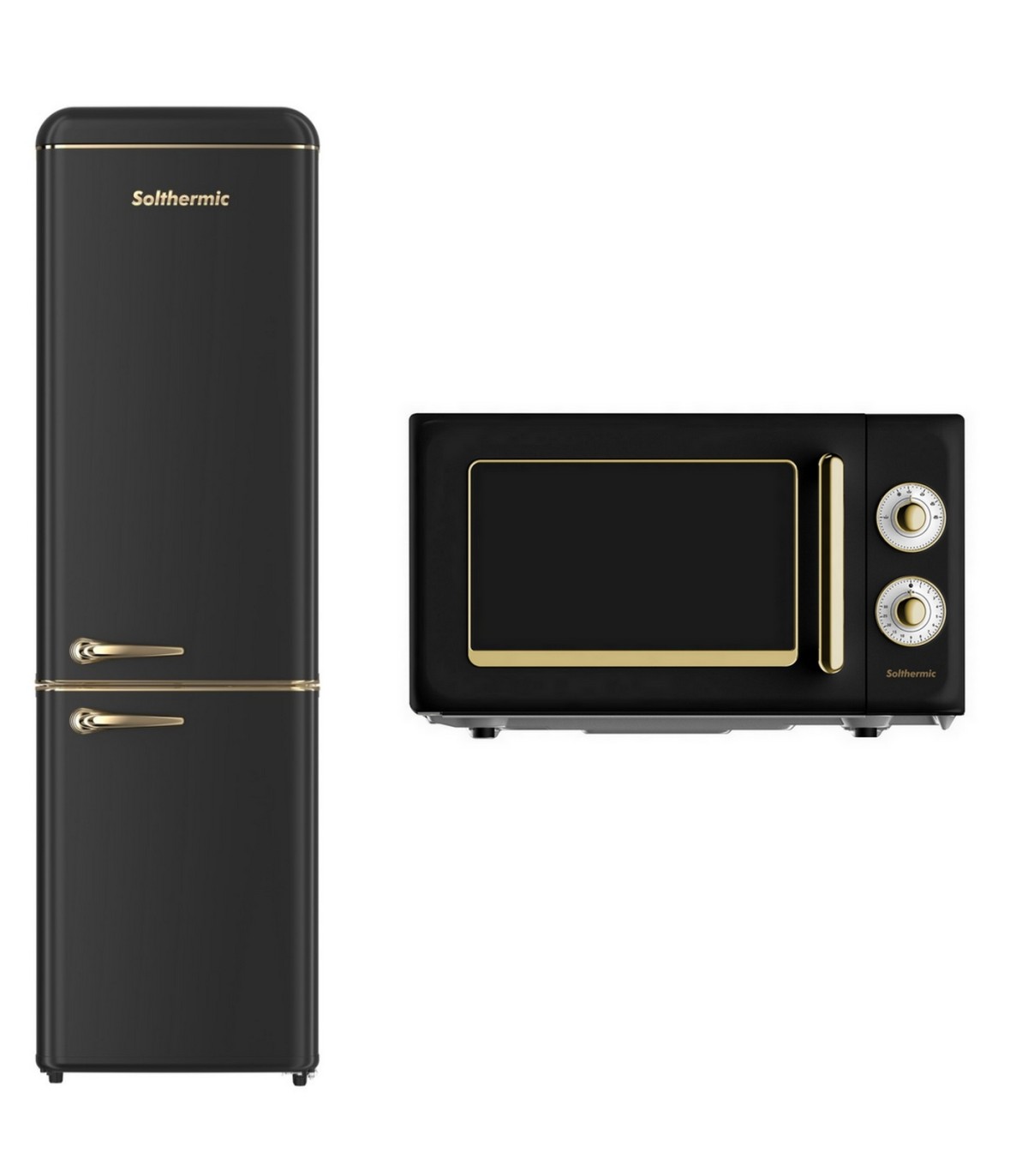 SOLTHERMIC® COMBO PACK FRIGO-COMBI RETRO 1,88 FCR188N BLACK + BLACK RUSTICO FOUR À MICRO-ONDES BLACK