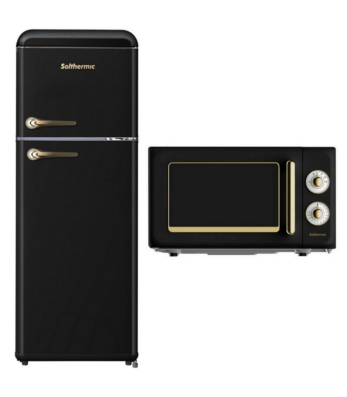 SOLTHERMIC® COMBO PACK FRIGO-COMBI RETRO 1,88 FCR188N BLACK + BLACK RUSTICO FOUR À MICRO-ONDES BLACK