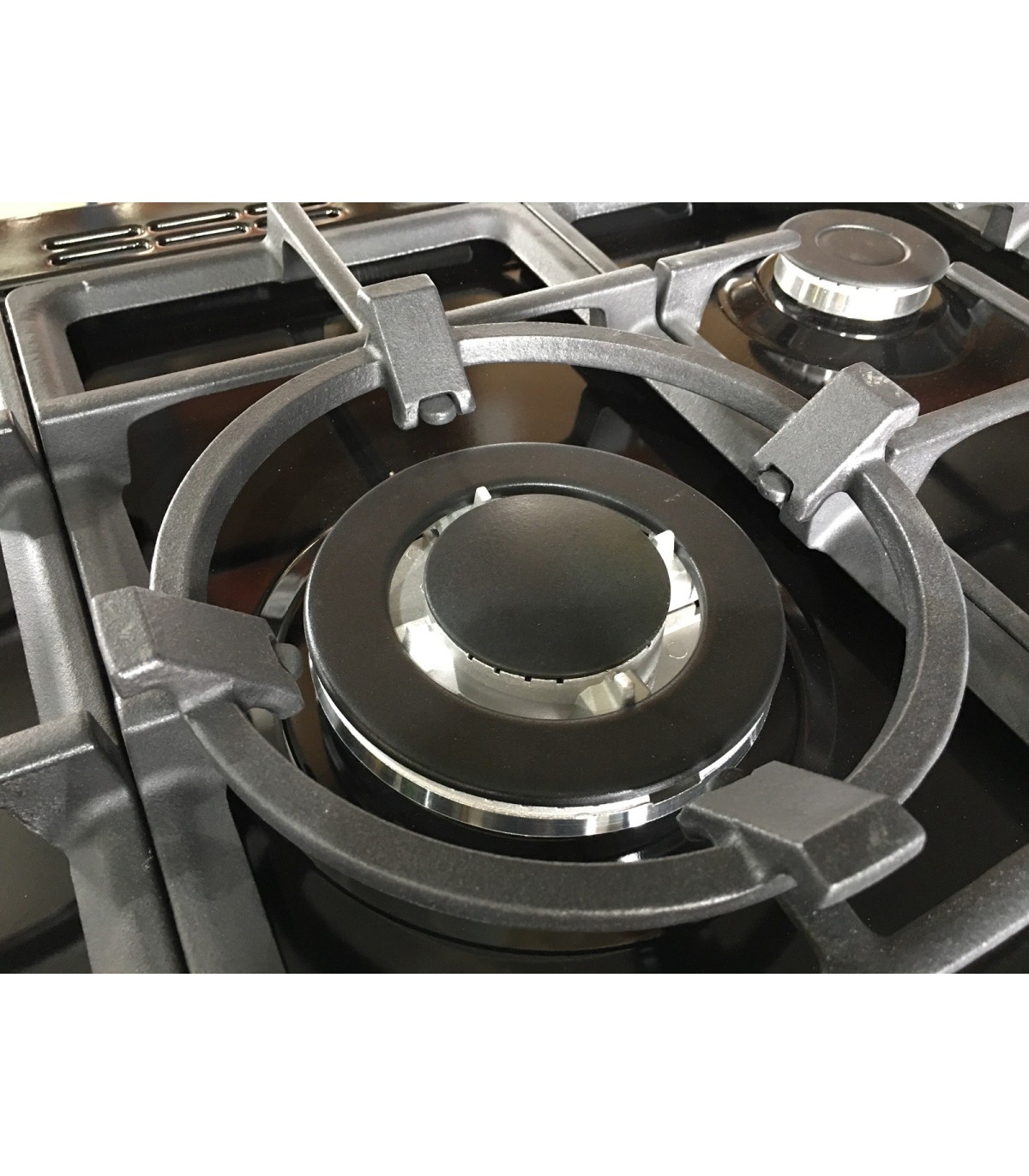 Fuegos y Quemadores: La cocina dispone de 4 fuegos de gas y 1 Wok Triple Corona, lo que te permite cocinar una amplia variedad de platos simultáneamente. Las parrillas de hierro fundido son duraderas y resistentes. Todos los fuegos cuentan con encendido automático y el sistema de seguridad FFD de termopar para garantizar la seguridad.