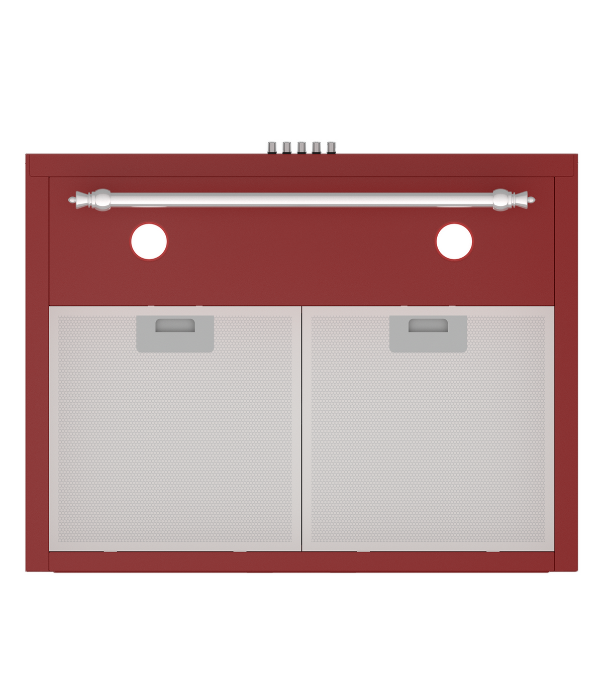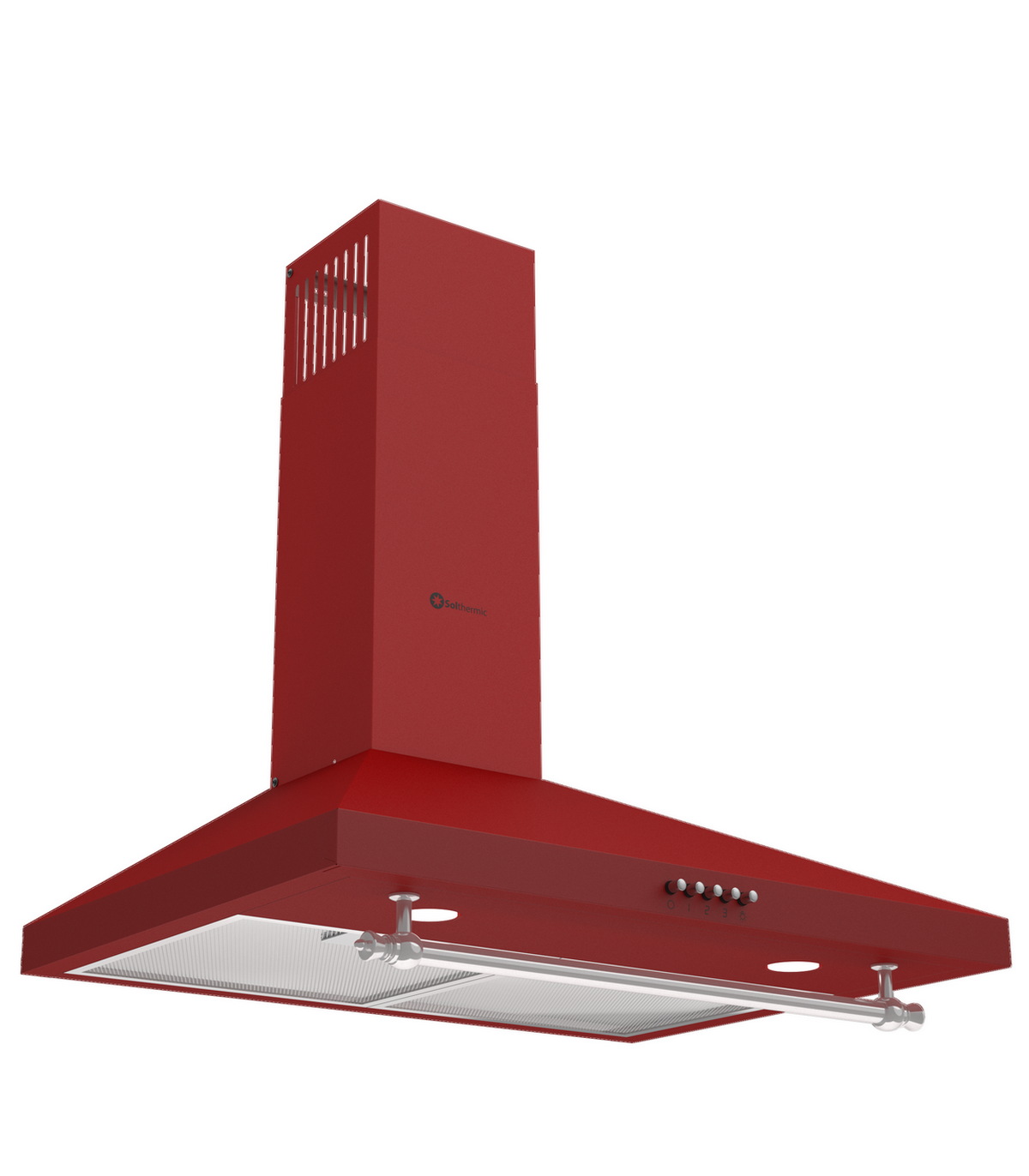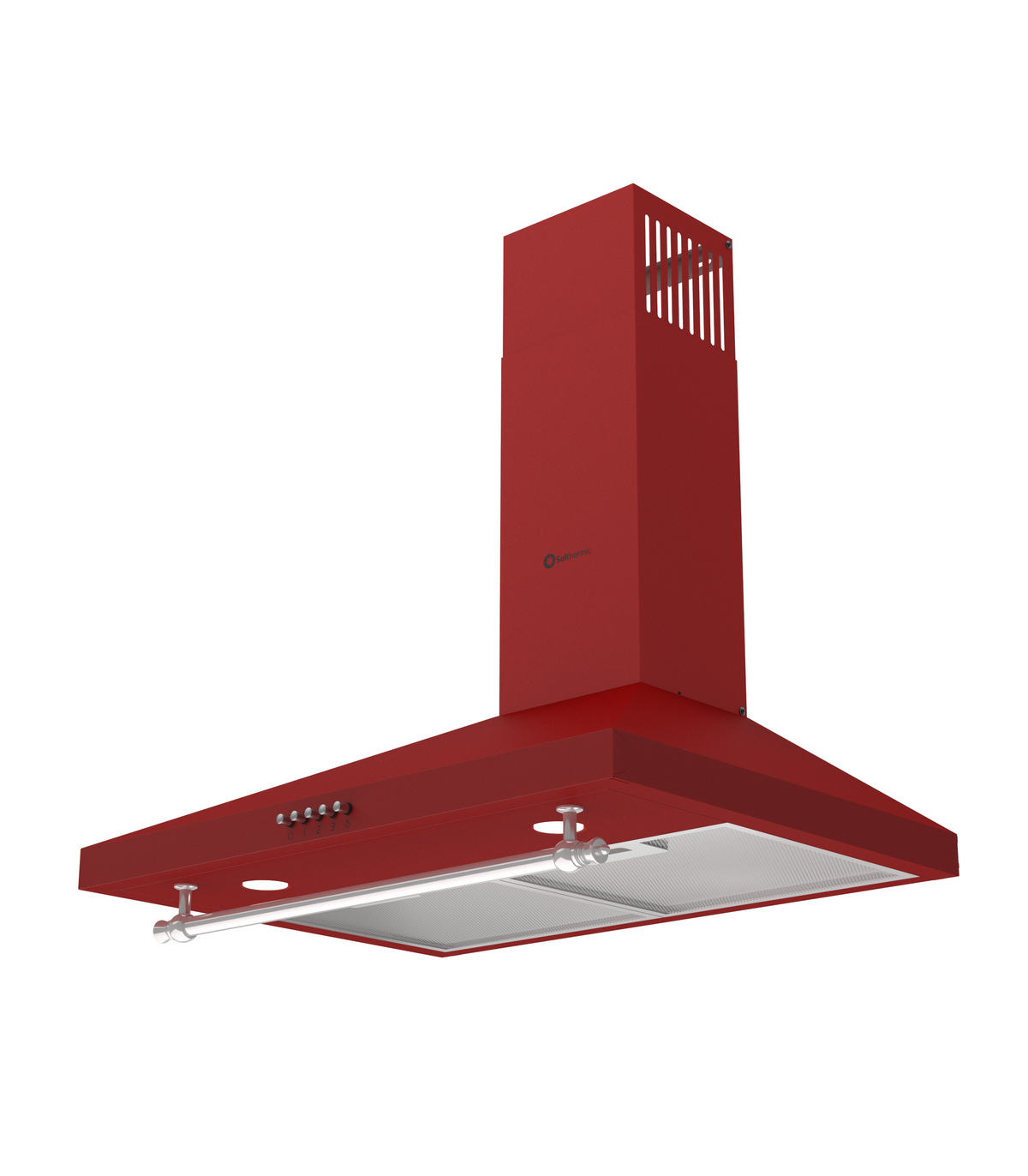Diseño: Con un acabado rojo burdeos rústico y detalles dorados, esta campana extractora agrega un toque de estilo y sofisticación a tu cocina.