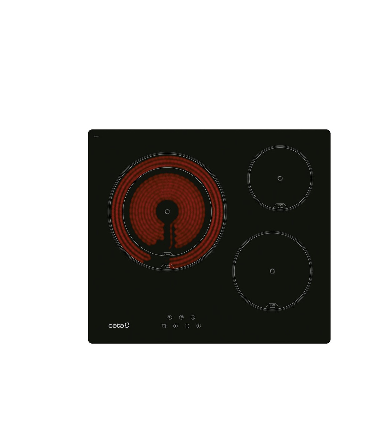 3 quemadores (semi-rápido 1,75 kW + rápido 2,80 kW + doble anillo 4,00 kW)