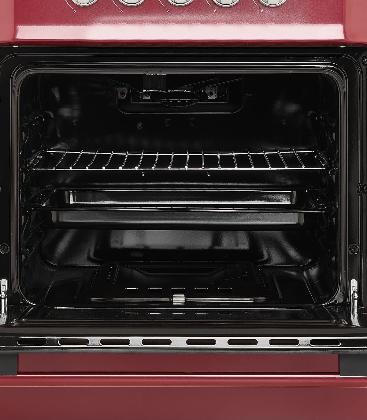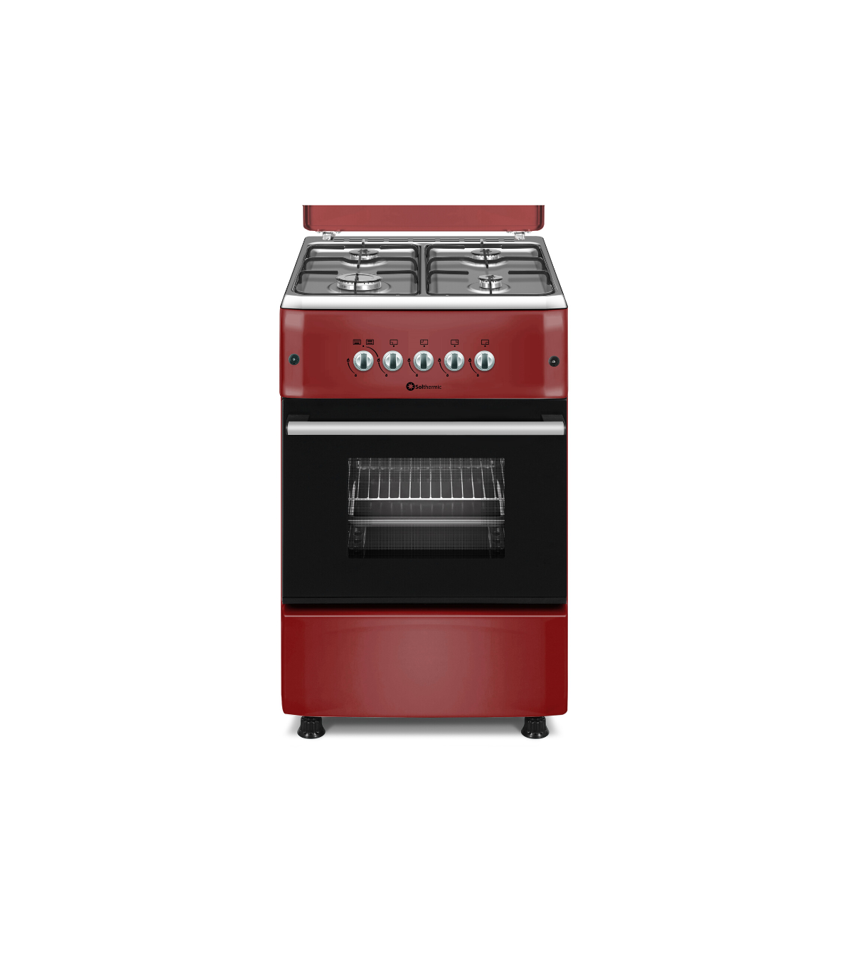 Design moderno e vibrante: Com a sua cor vermelha marcante e dimensões de 50x55 cm, este fogão dará um toque de vibração e elegância à sua cozinha.
