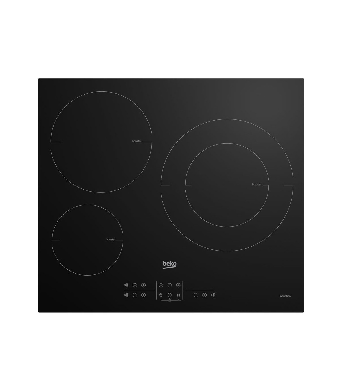 - 3 zonas de indução: Três zonas de cozedura de tamanhos diferentes oferecem flexibilidade para adaptar a superfície de cozedura de acordo com as necessidades do utilizador.