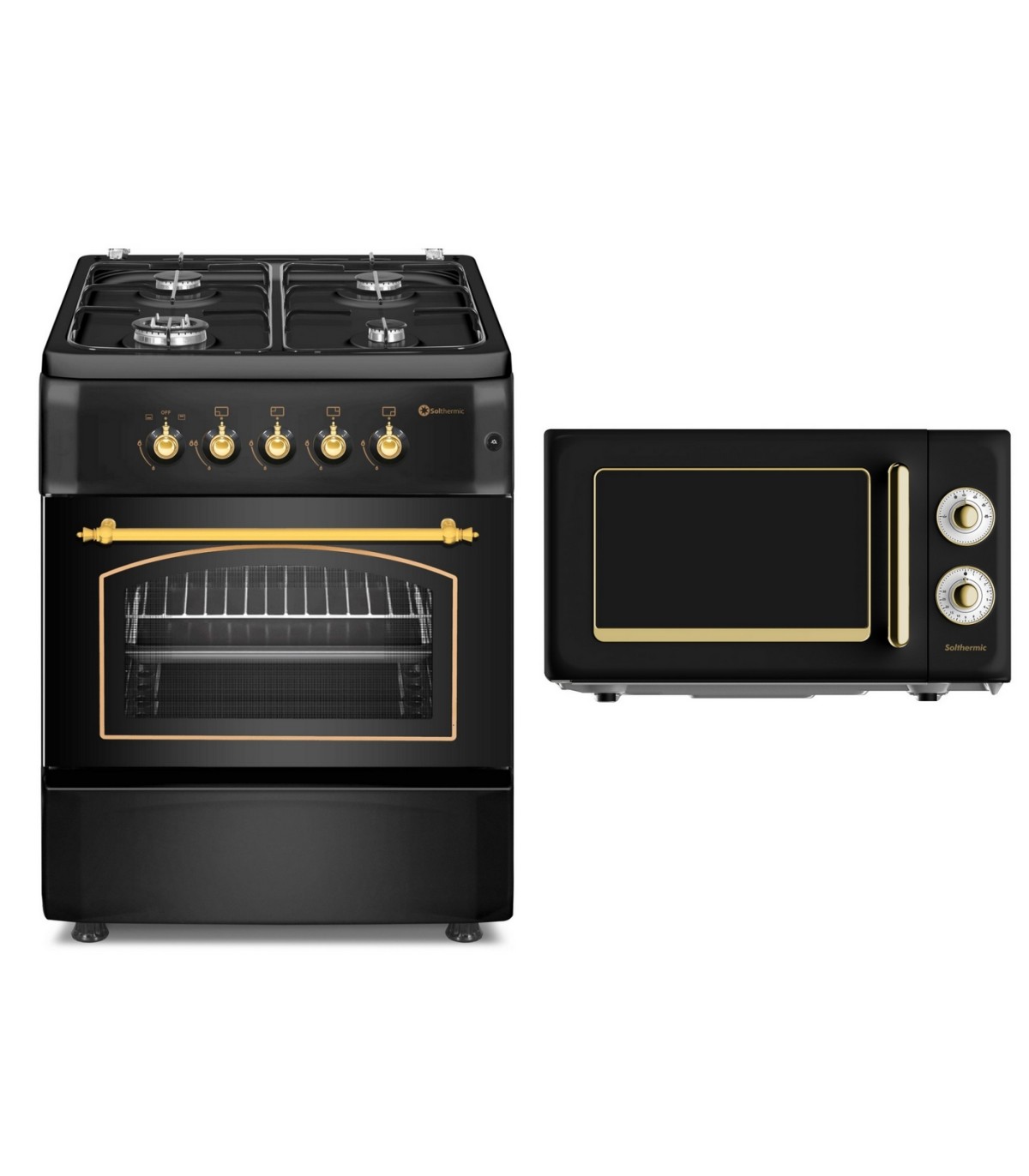Descubra a elegância e a eficiência culinária com o Fogão a Gás Solthermic com Forno e Grelhador numa ousada cor preta rústica, realçada por comandos dourados. Este fogão é muito mais do que um eletrodoméstico; é uma afirmação de estilo e desempenho na sua cozinha.