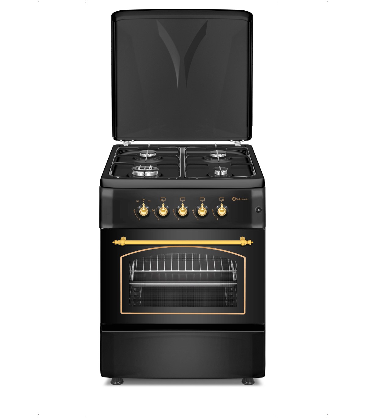 Descubra a elegância e a eficiência culinária com o Fogão a Gás Solthermic com Forno e Grelhador numa ousada cor preta rústica, realçada por comandos dourados. Este fogão é muito mais do que um eletrodoméstico; é uma afirmação de estilo e desempenho na sua cozinha.