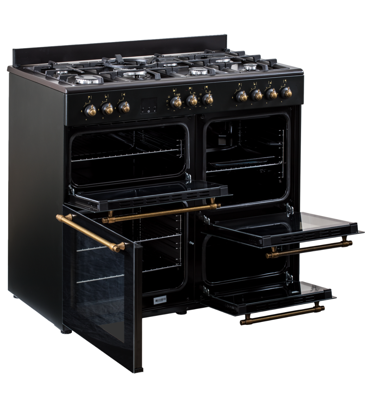 Fogão a gás: O fogão tem 7 queimadores a gás e 3 fornos eléctricos para uma variedade de métodos de cozedura.