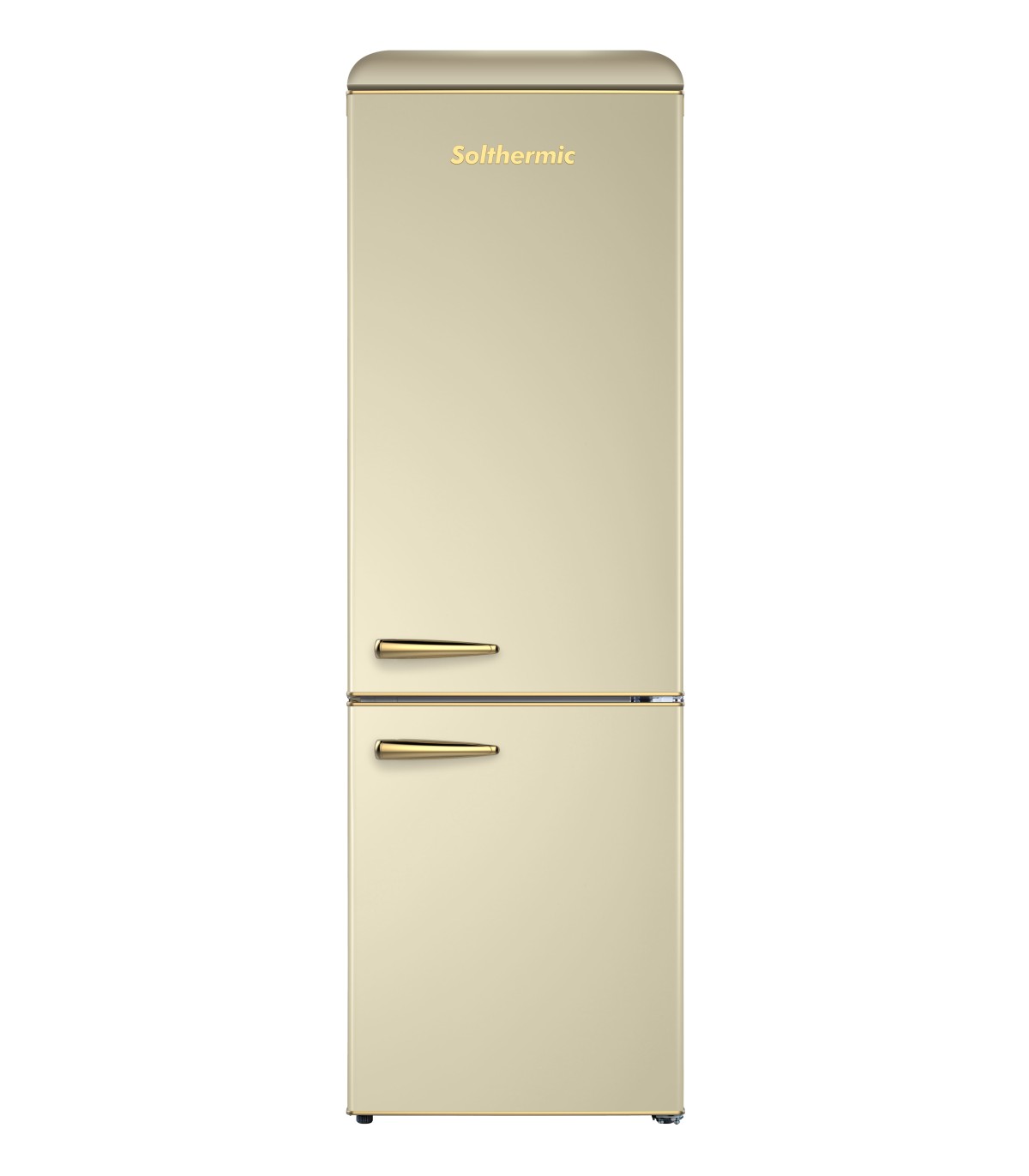 O Solthermic Frigo-Combi Retro 1,92 FCR192GC destaca-se pelo seu estilo vintage na cor rústica CREMA com acabamentos dourados, combinando design e funcionalidade. Com dimensões de 1.920 x 599 x 628 mm, é ideal para casas, escritórios ou apartamentos com espaço limitado, oferecendo uma grande capacidade sem ocupar muito espaço.