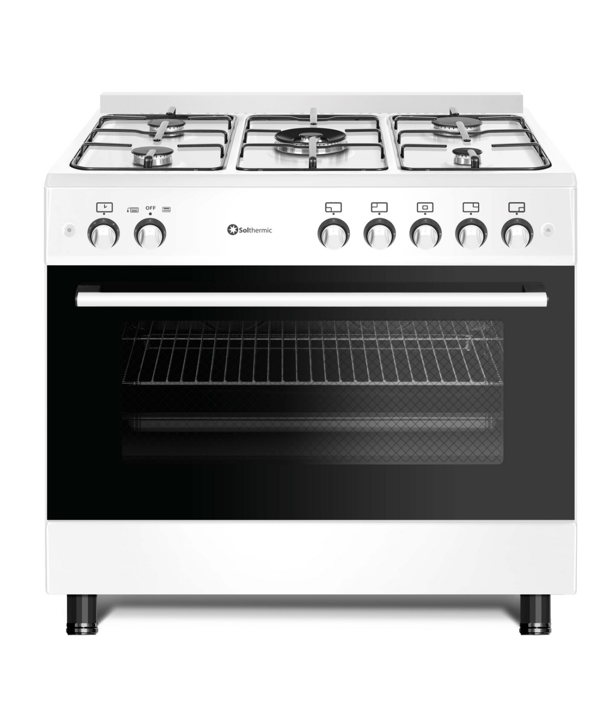 Explora la excelencia culinaria con la Cocina de Gas F9L50G2-W blanca con horno Solthermic Panorámico, diseñado para elevar tus creaciones culinarias a nuevas alturas.