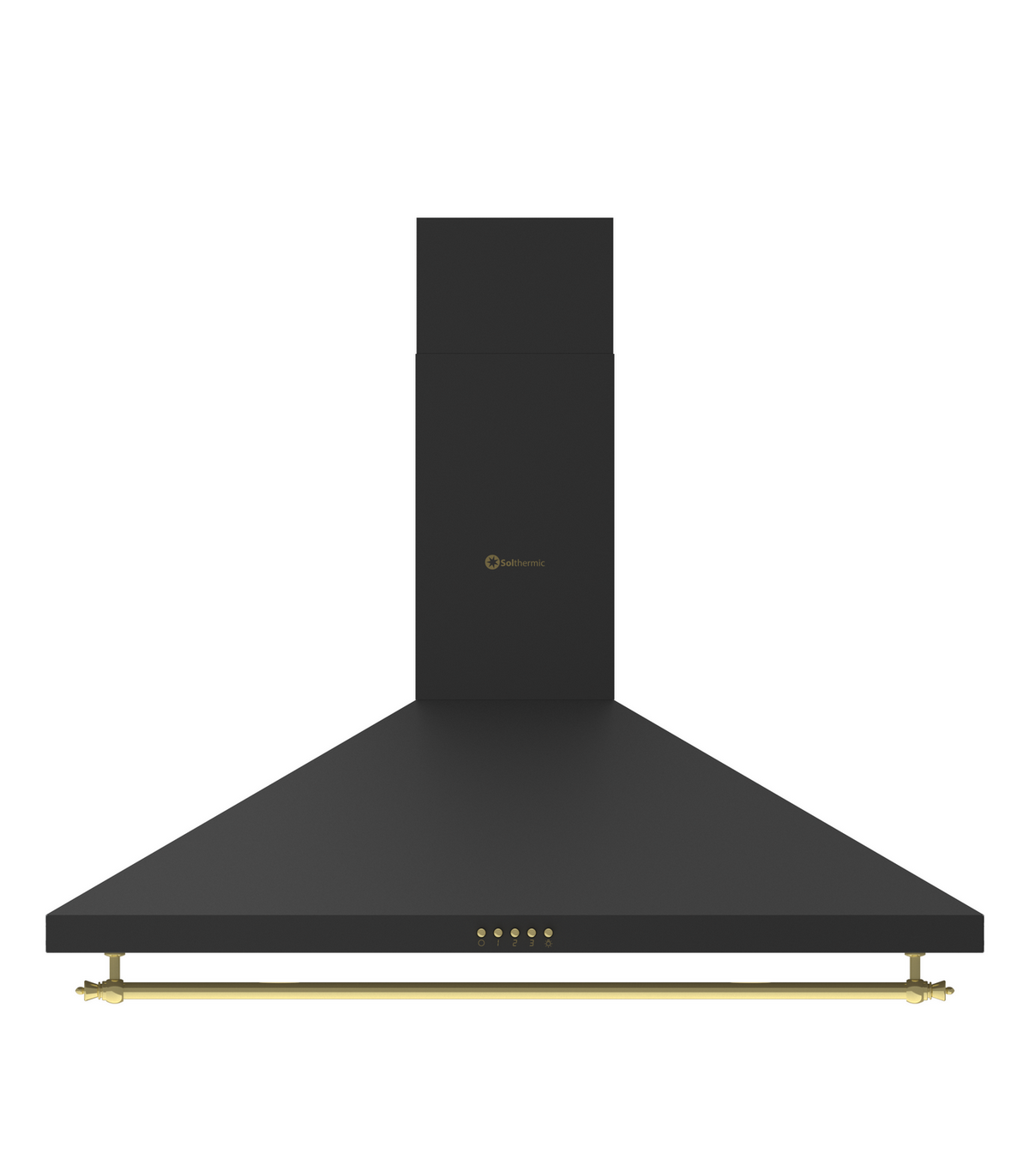Diseño Retro: Con un estilo rústico en color negro, mandos y ribetes dorados, esta campana extractora añade un toque de elegancia y nostalgia a tu cocina, ideal para aquellos que desean una estética propia de otras épocas.
