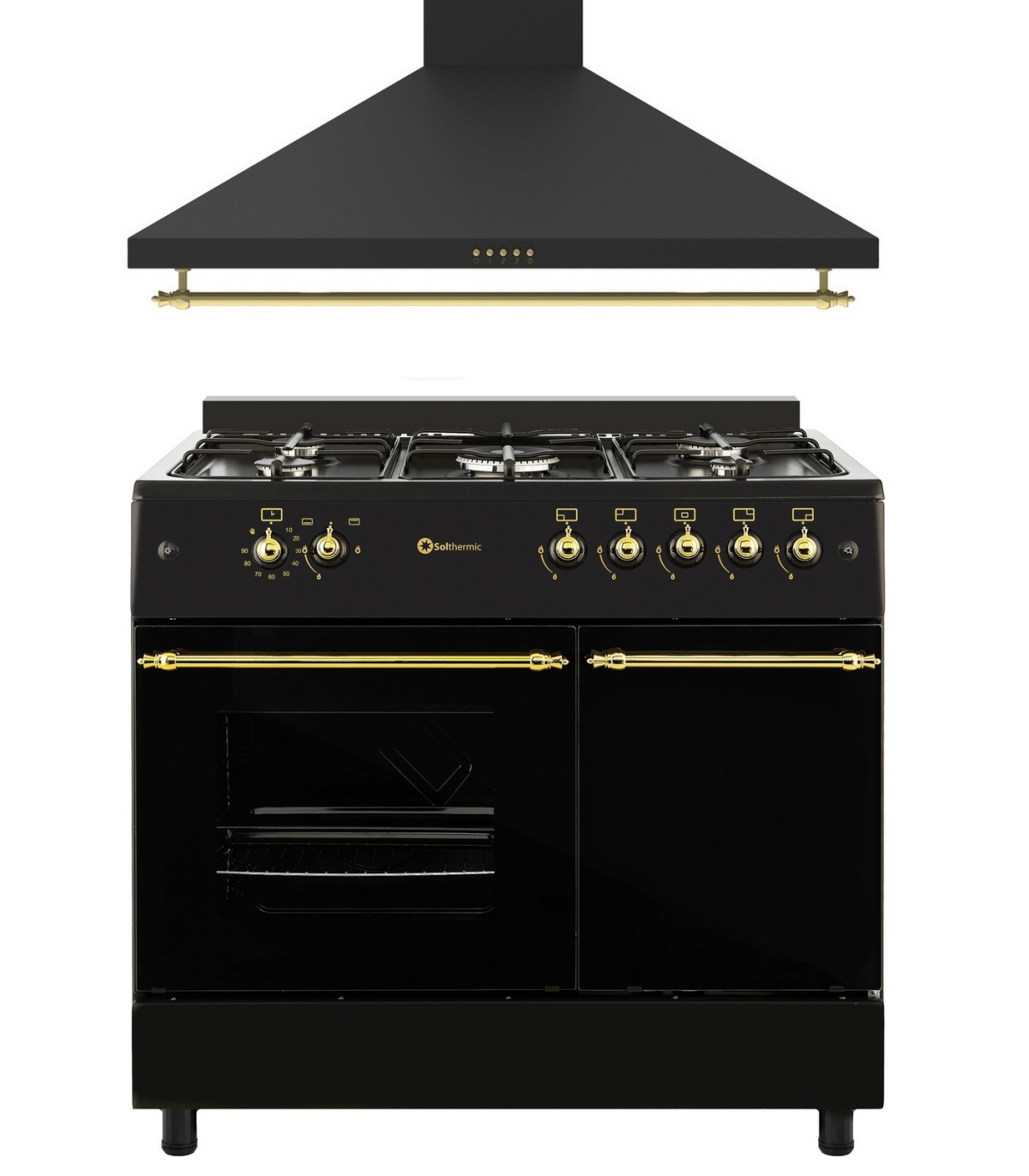 Diseño Retro: Con un estilo rústico en color negro, mandos y ribetes dorados, esta campana extractora añade un toque de elegancia y nostalgia a tu cocina, ideal para aquellos que desean una estética propia de otras épocas.