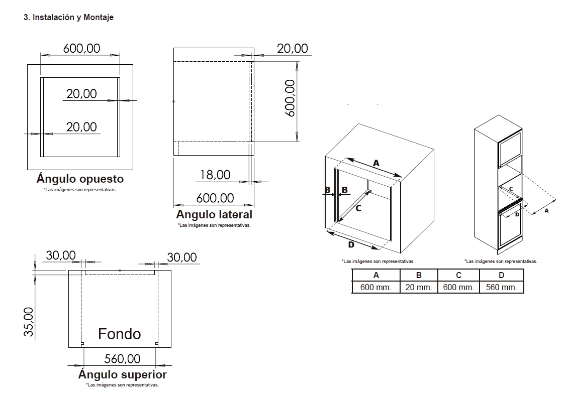 Medidas del hueco de instalación 590x560x560 mm