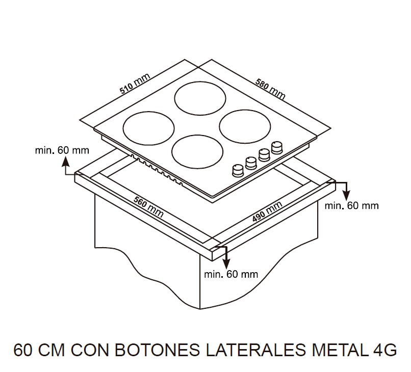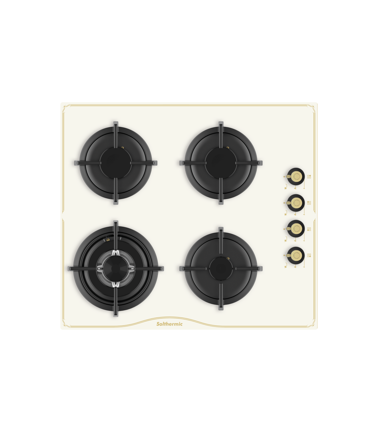 Placa de CristalGas de 4 fuegos en acabado crema, diseñada para quienes valoran la cocina tradicional con un toque estético elegante y atemporal. Su diseño combina perfectamente en cocinas clásicas, rústicas o de estilo vintage, aportando calidez y personalidad al espacio.