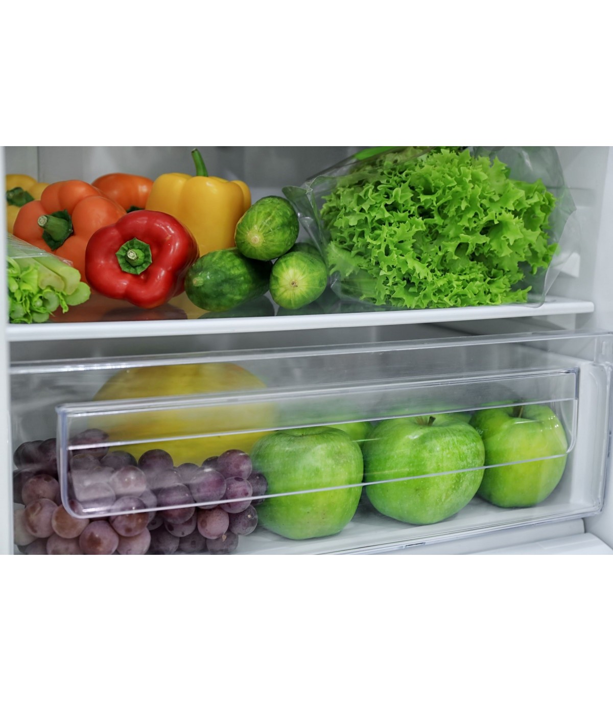 • Interior del frigorífico 4 estantes de vidrio, 1 cajón, 3 estantes en la puerta